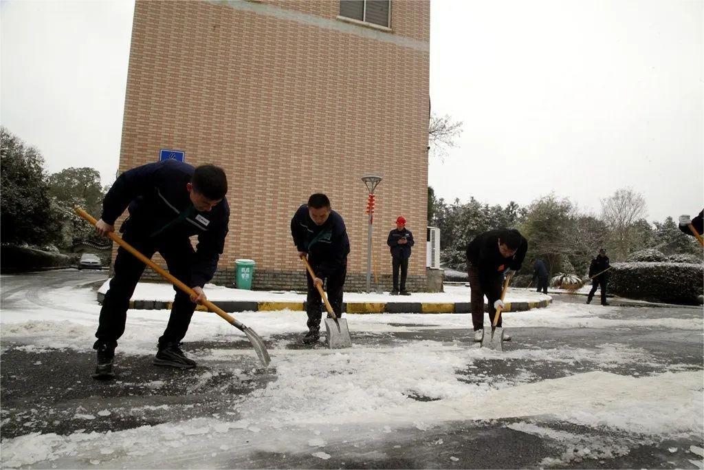 生產(chǎn)管理部組織員工清理辦公樓廣場(chǎng)積雪,確保進(jìn)出員工、車(chē)輛安全通行。
